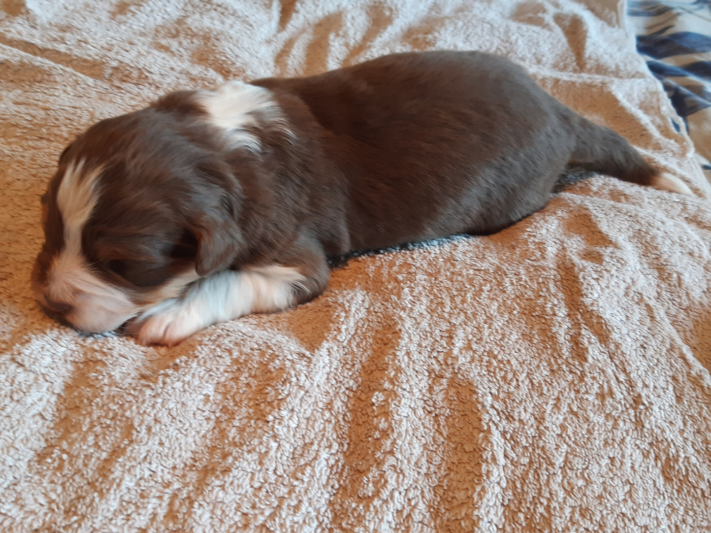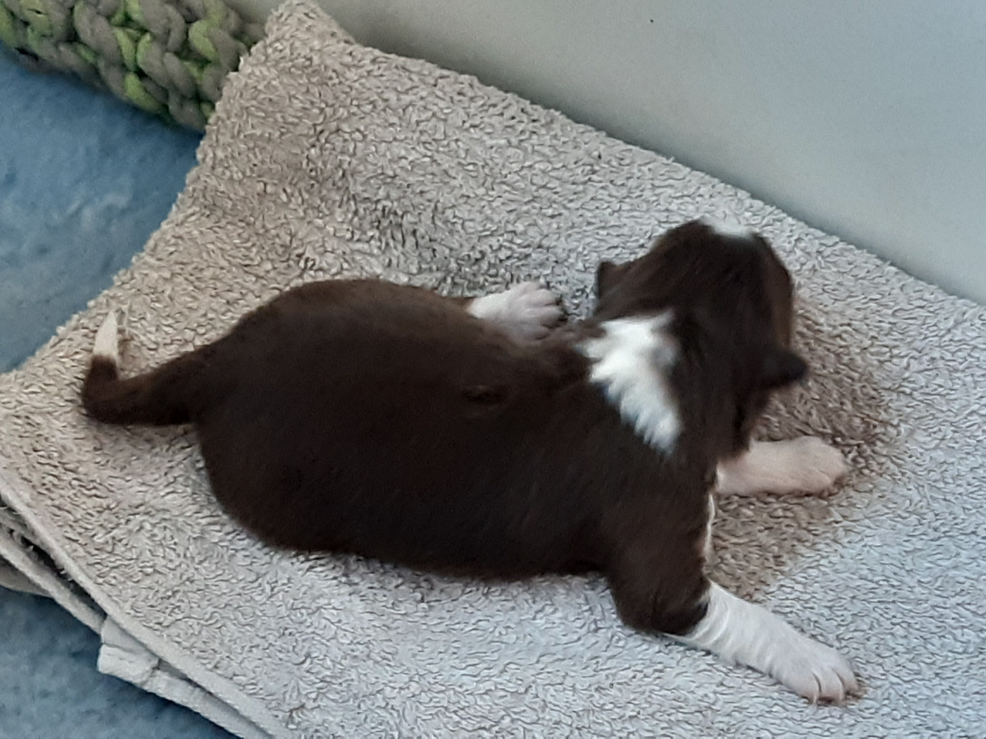 Chiot disponible dès 9 semaines si un chien est déjà à la maison; nous privilégions une arrivée dans son nouveau foyer à 10 ou 11 semaines si c'est le seul chien de la famille.